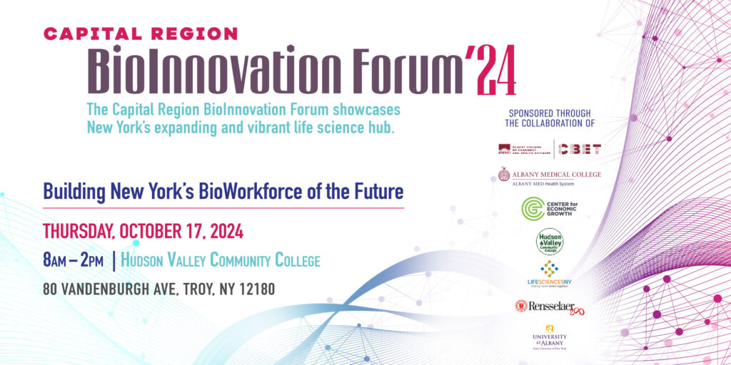 The 2024 BioInnovation Forum will be held on October 17th at Hudson Valley Community College. Our Master of Ceremonies will be Win Thurlow, Executive Director of LifeSciencesNY, and the day will have a special focus on workforce development.
