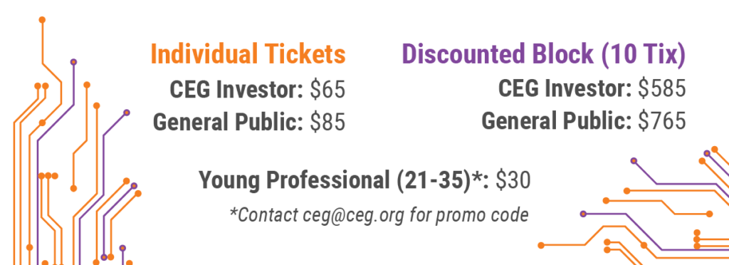 Discount Block of 10 tickets: CEG Investor: $585 | General Public $765