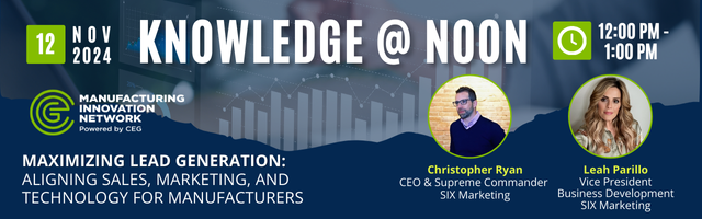 In this month's Knowledge @ Noon webinar, we will explore innovative strategies for manufacturing companies to increase qualified leads. Learn how to effectively align sales, marketing, and technology to create a lead-generation engine that actually works. Our experts will share insights on data-driven prospecting, content optimization for the manufacturing sector,