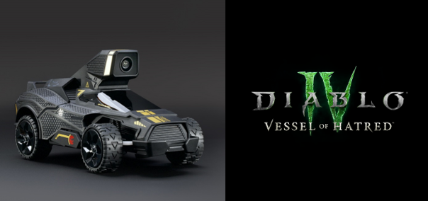 A mixed reality RC car for Velan Studios’ Hot Wheels: Rift Rally (left) and Blizzard Entertainment’s Diablo IV expansion, Vessel of Hatred (right).