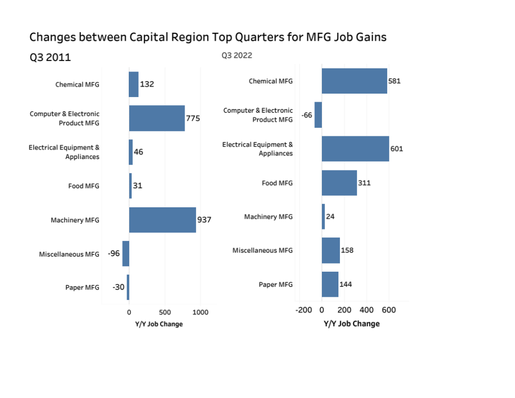 The below Capital Region manufacturing industries are now substantially larger than they were before the pandemic (Q3 2019 vs Q3 2022):