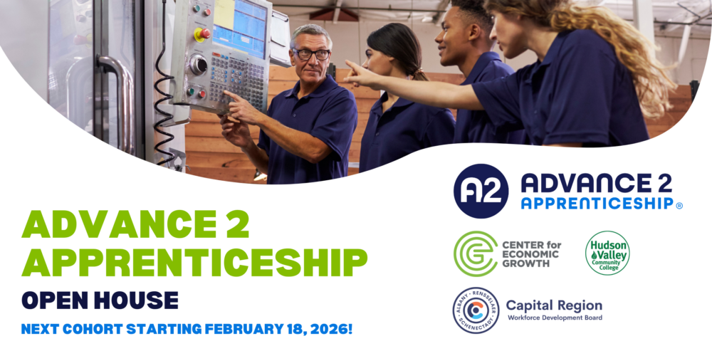 Hudson Valley Community College Troy, New YorkJoin us for an open house to learn about our manufacturing pre-apprenticeship program, Advance 2 Apprenticeship and how you can apply to join our February 2026 cohort! Tuesday, January 27 | 4:00 - 6:00 p.m. | Room 208, Haas Center for Advanced Manufacturing at Hudson Valley Community College Are you